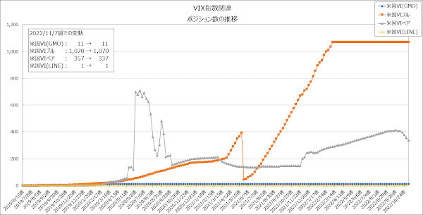 VIX指数関連のCFDである米国VI(GMO、LINE)、米国VIブル、米国VIベアの2022年11月7日週の収益は前週比で