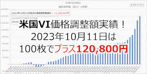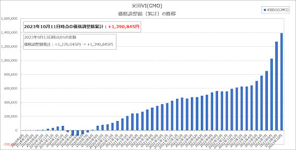 2023年10月11日に発生した米国VI(GMO)の価格調整額は1枚あたりプラス1,208円でした。